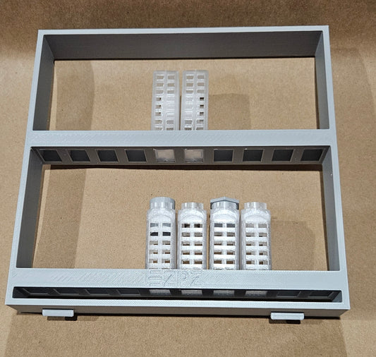 Raising queens is full of challenges. Let EZPZ help you protect your valuable investment by keeping your queens safe from threats. Whether you use JZBZ, Nicot or even your own wax cell cups for raising queens, this cage is for you! Keep your cells from being torn down or killed by a rogue queen. Keep your newly emerged virgins from fighting each other. Organize your cages in the incubator and store more with compact, efficient trays. Start here for raising your own queens or take your queen breeding to the next level with EZPZ!