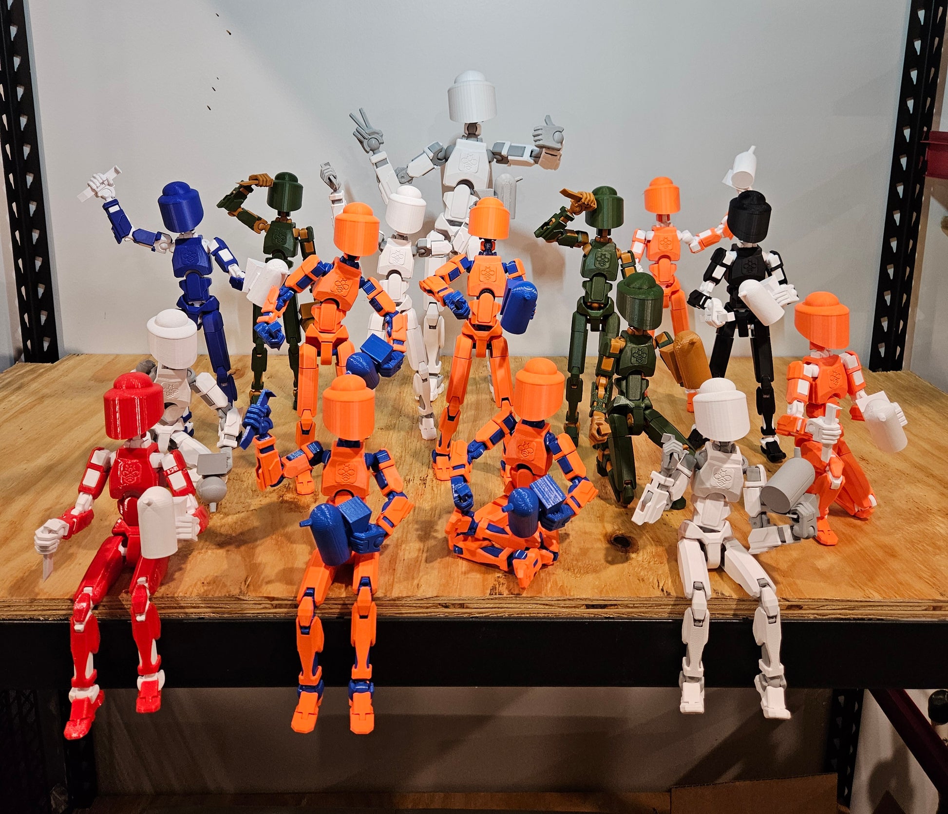 They are made with PETG plastic frames and PETG or PLA "armor"(the outer pieces). They are sturdy but some are more flexible than others. Even though the plastic is the same, the different pigments will have an effect on how much they wear over time and how smoothly the joints move.